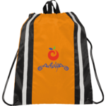 The Reflective Drawstring Bag has an open main compartment with reflective stripes, a carry handle and a cinching rope closure.