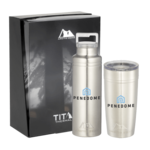 Do not miss out on one of the best gift sets of the year. Includes the Arctic Zone® bottle 1626-22 20oz and the Arctic Zone® 20oz Tumbler 1625-66. Durable, double-wall 18/18 stainless steel vacuum construction with copper insulation, which allows your beverage to stay cold for 24 hours and hot for at least 8 hours. The construction also prevents condensation on the outside of the piece. Leed's Exclusive. 20oz. Gift Box is not decorated. There might be a tiny color variance across the components in a set. “For additional protection, all Drinkware pieces will be individually polybagged and inserted in the gift box.” Laser engraving silver Drinkware will result in a subtle, tone on tone decoration